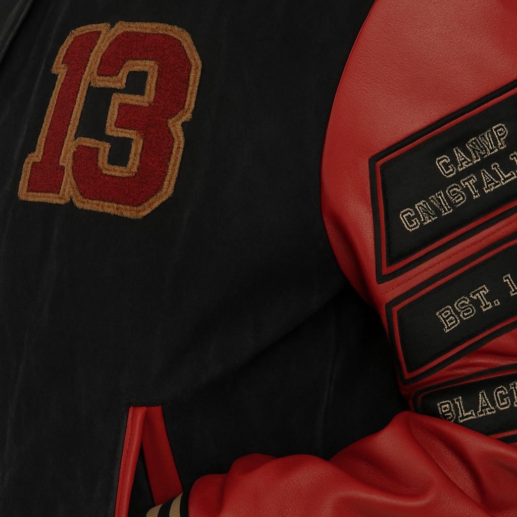 Key Features: The jacket combines a classic varsity style with a unique horror twist. The red sleeves and Number 13 design make it stand out. Ideal for those who want to make a statement. 🎭