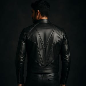 If you’re looking for a distinctive and stylish biker jacket, this handmade black leather piece is perfect.