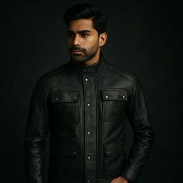 Handmade Black Leather: The jacket is made from black leather, offering a sleek and stylish look.