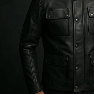 This handmade black leather military jacket is a classic design that combines style and durability. Perfect for men looking for a versatile outerwear option.
