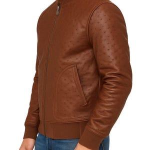 Men’s Brown Ostrich Print Leather Bomber Jacket 🌟