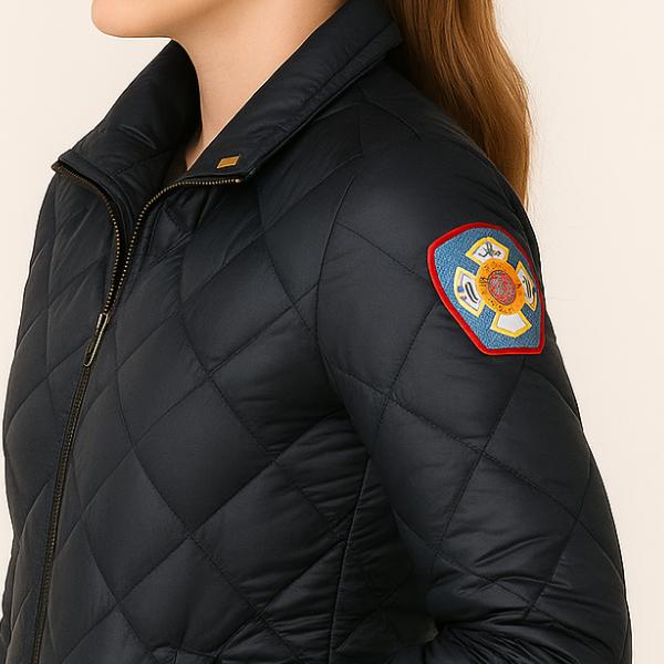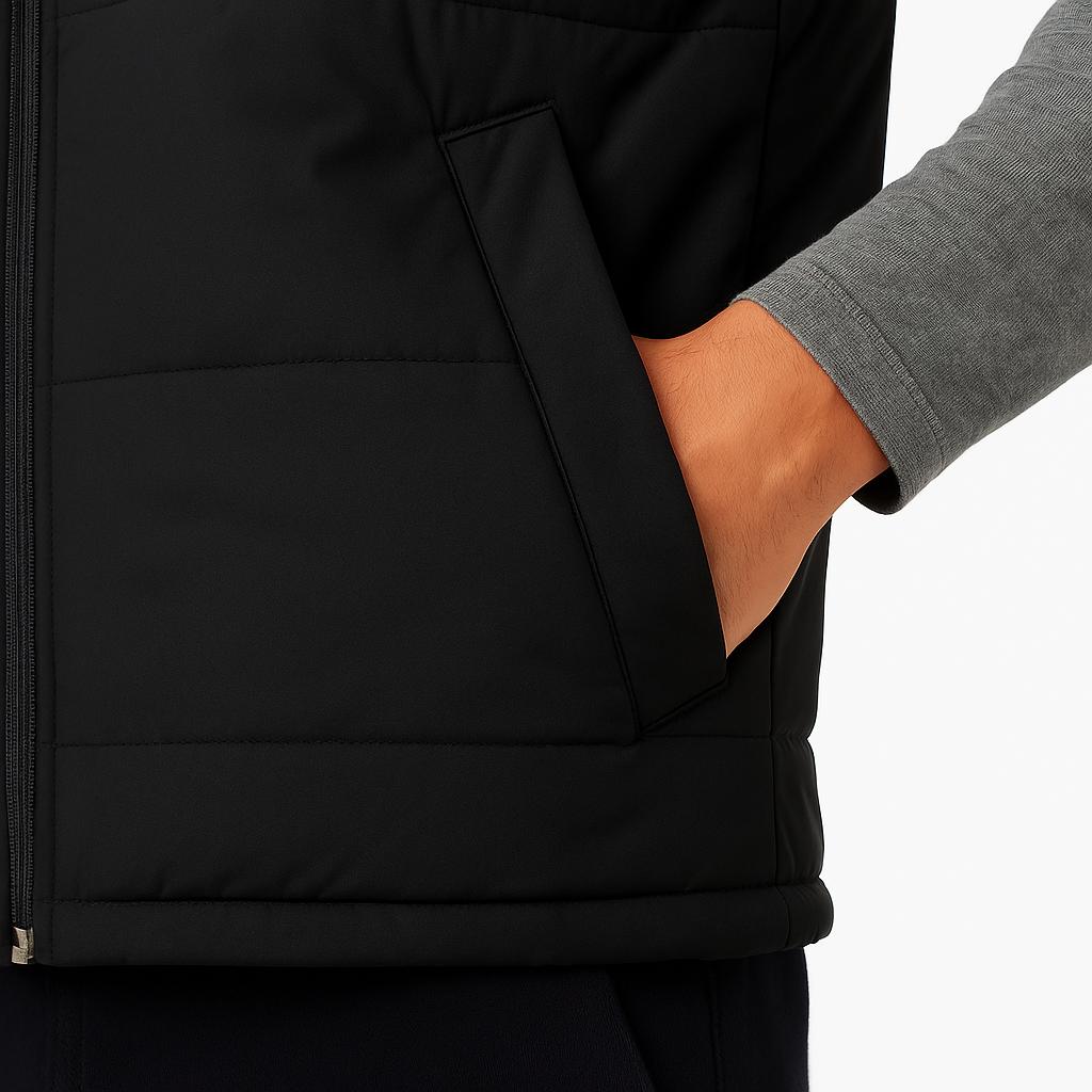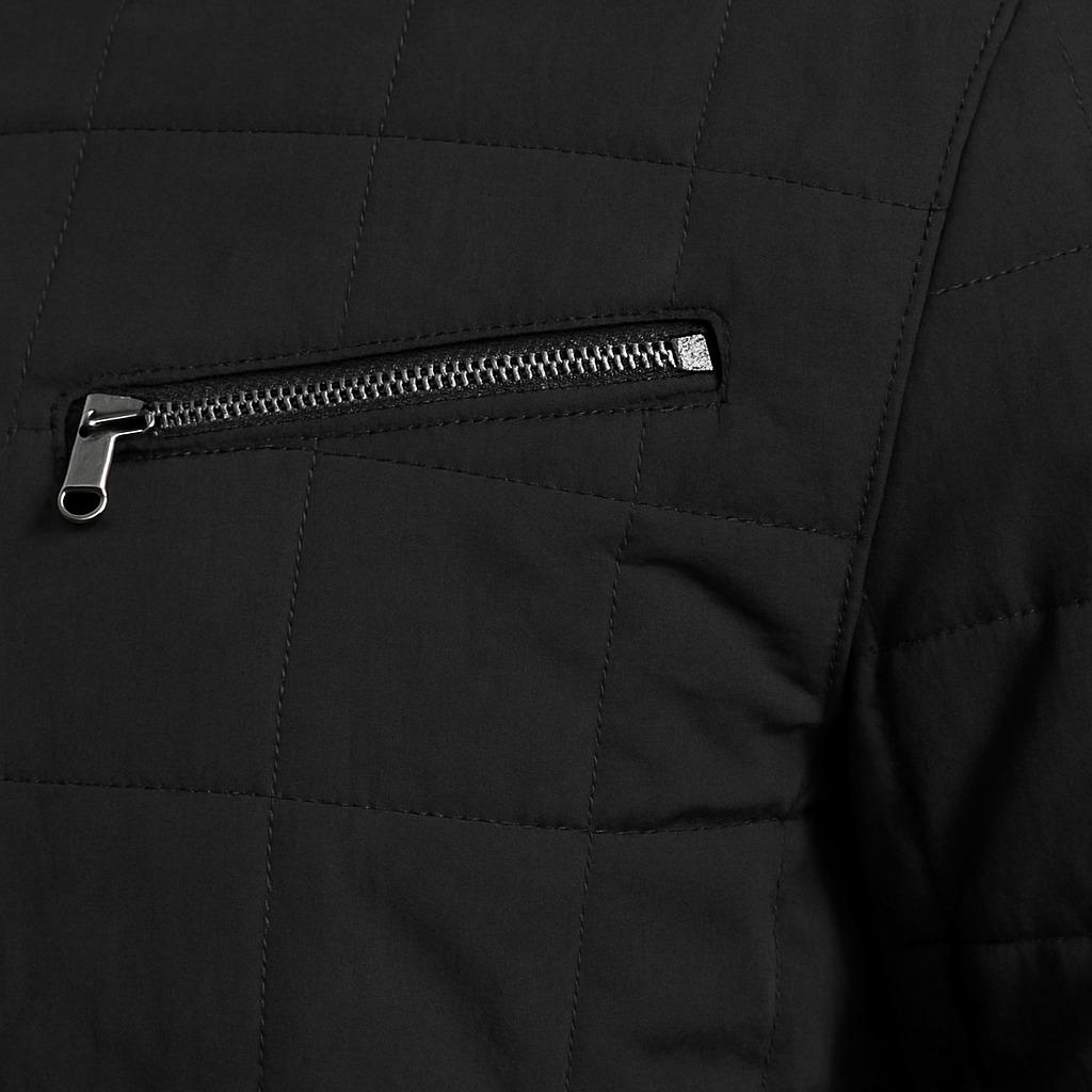 Pockets: The jacket includes practical, integrated side slash pockets that are seamlessly built into the quilted panels for a clean exterior silhouette.