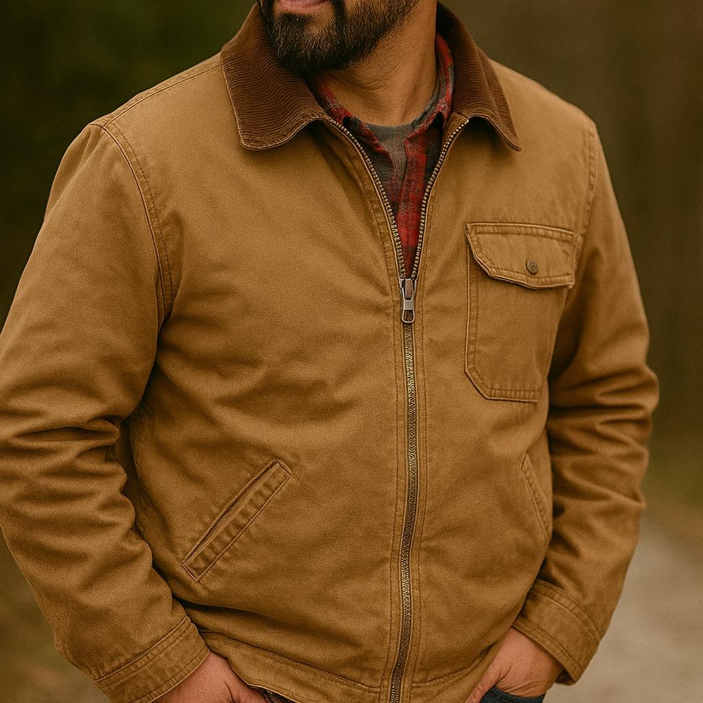 Collar: It is finished with a smart, flat lay-down collar that gives the jacket a refined, almost equestrian or traditional field jacket look, distinct from the typical bomber or stand-collar puffer.