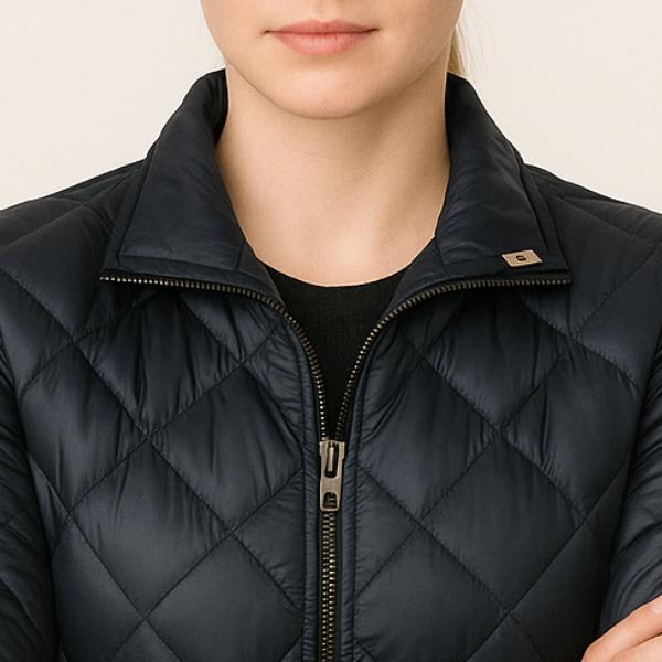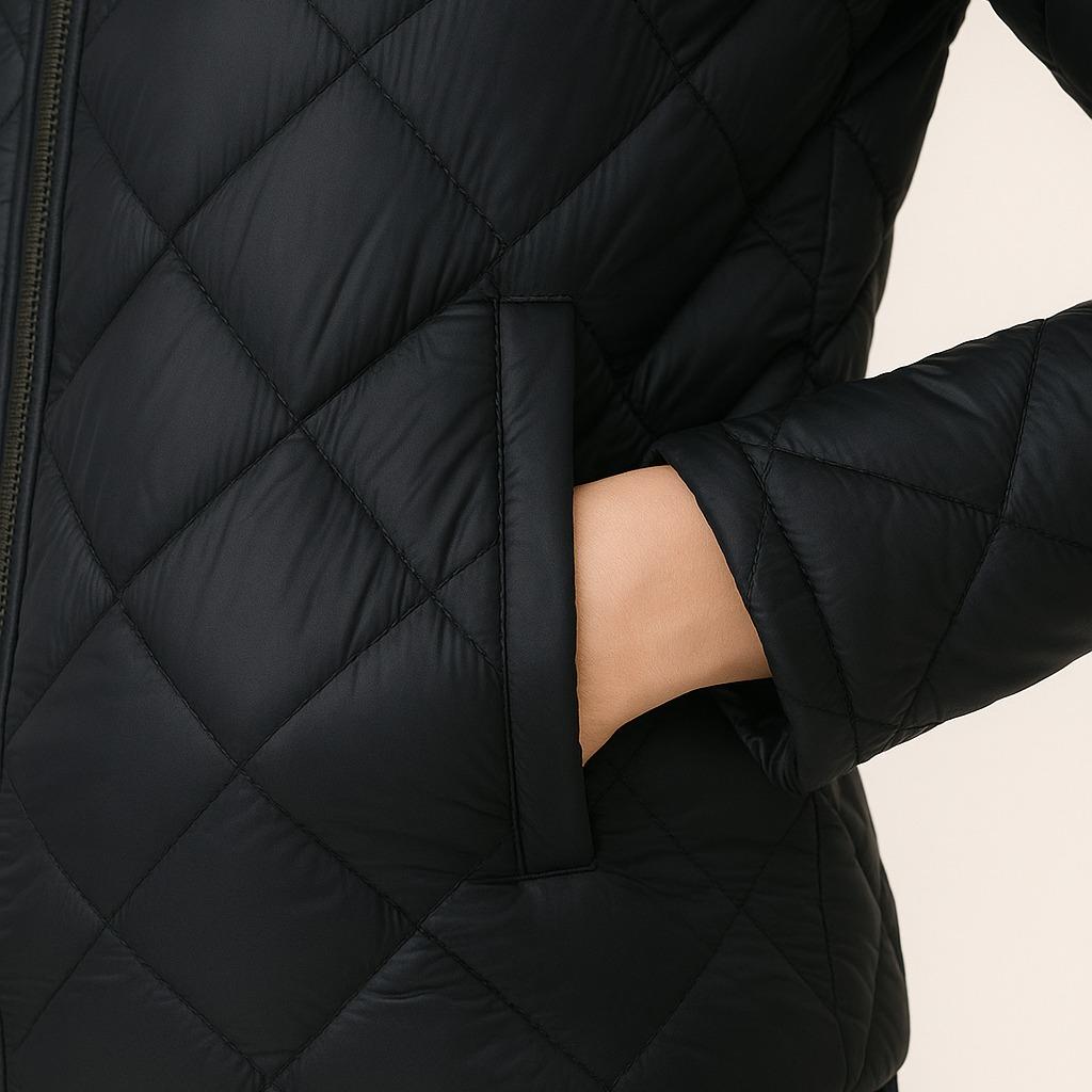 This diamond-quilted jacket is an ideal choice for a smart casual or business casual setting. Its structure and clean lines elevate it beyond simple sportswear. It pairs beautifully with tailored trousers or dark denim, button-down shirts, and knitwear. Whether you are running errands, traveling, or attending a casual weekend event, this piece provides an essential balance of style, comfort, and lightweight functionality.